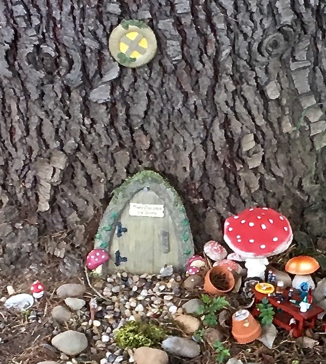Here we have two lawn figurines placed together to create a story. I was struck by the unfolding drama. We are freeze framed in a moment, the exact fraction of a second that a bear has wandered up behind Snow White in one of her typical magical trances while spreading her joyous love and affection toward a sweet, tame song bird. Perhaps they are cheerfully engaged in song. Your mind may have created a different scenario. These lawn ornaments allow us to consider an interaction that will never actually happen. Is the bear a friend of Snow White? Can her charms work on this ferocious beast so she can avoid being mauled? Will the bear sneak up on this unsuspecting sweet soul and eat her before she even knows what happened? You’re welcome to your own story if I haven’t covered all the bases. We’ll never really know because we’re dealing with the infinite and frozen-in-time aspect of lawn ornament arrangement.